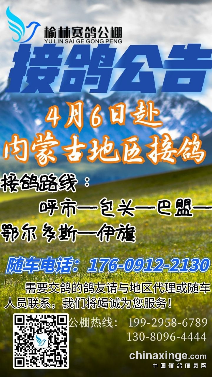 陕西榆林赛鸽公棚4月6日赴内蒙古地区接鸽公告
