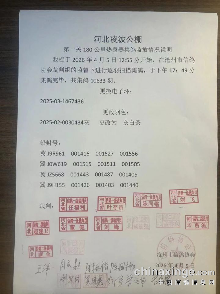 河北凌波赛鸽公棚105公里收费站开笼及扫描链接