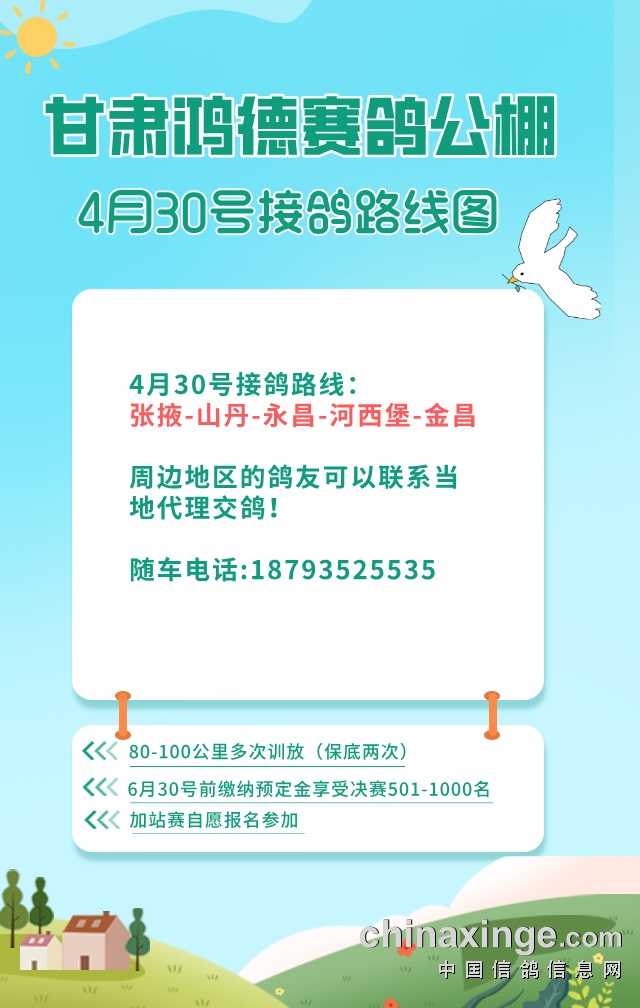 甘肃鸿德赛鸽公棚4月30号接鸽路线图
