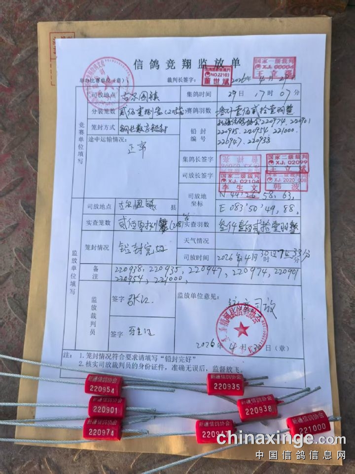 2026年西域龙翔赛鸽春棚第二关320公里热身赛更换电子环